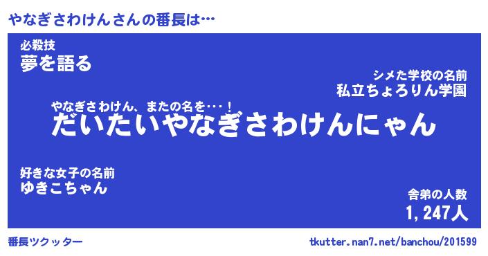 | 意味不明あだ名 | 『ペロリンやなぎさわけん』 |