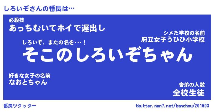 | ヒーロー風カッコイイあだ名 | 『スーパーシロイゾ』『暗黒騎士シロ』 |