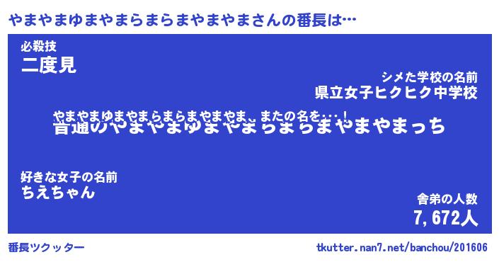 | ツイッター | やまやまゆまやまらまらまやまやまさんのツイッターID『masyumaro_man』 |