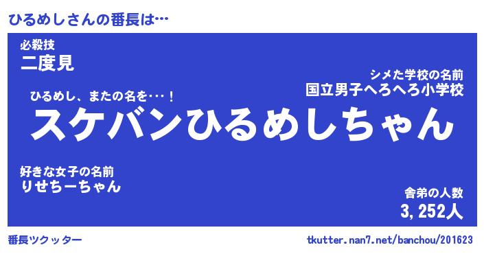 | ピコ太郎風あだ名 | 『ヒコ四郎』『ピヒ四郎』『ヒル三郎』 |