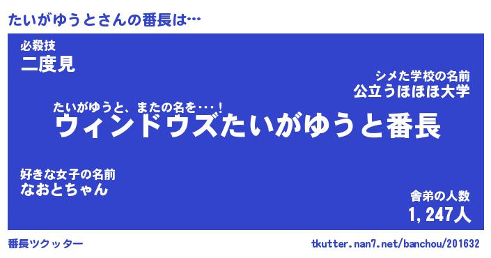 | ヘコむあだ名 | 『たいもー』『つくし』『たいお』 |