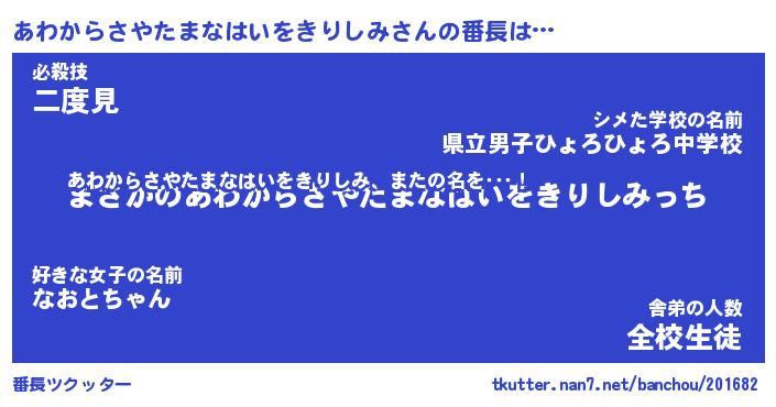 | ヘコむあだ名 | 『あわっふぃ~』『なまこ酢』 |