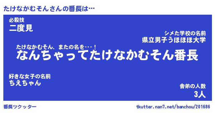 | 2回繰り返すあだ名 | 『たけたけ』『たたけけ』『ねちねち』 |