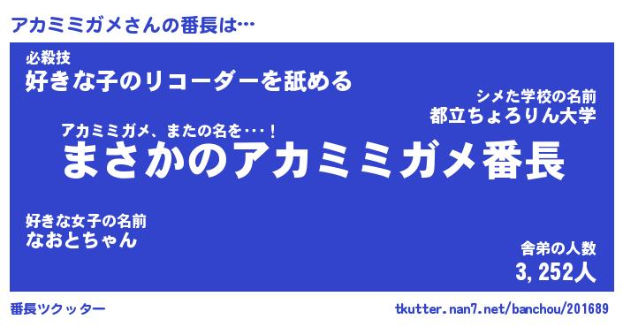 | 伝説のあだ名 | 『伝説のスナイパーアカミミガメ』 |