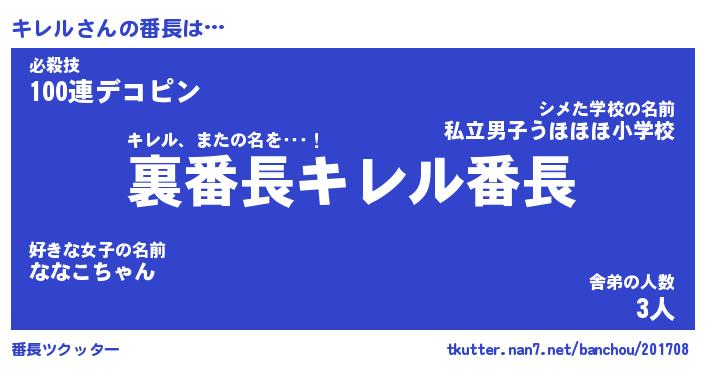 | ヘコむあだ名 | 『キレにー』『つくし』『キレを』 |