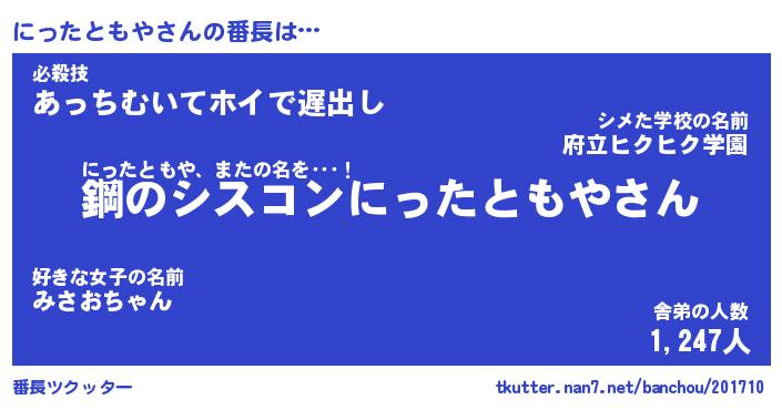 | 伝説のあだ名 | 『封印されしスナイパーにったともや』 |