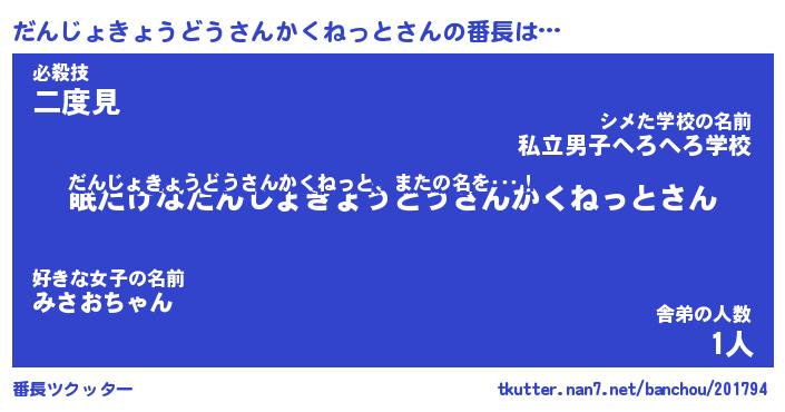 | 肩書あだ名 | 『だんじょきょうどうさんかくねっと社長』 |
