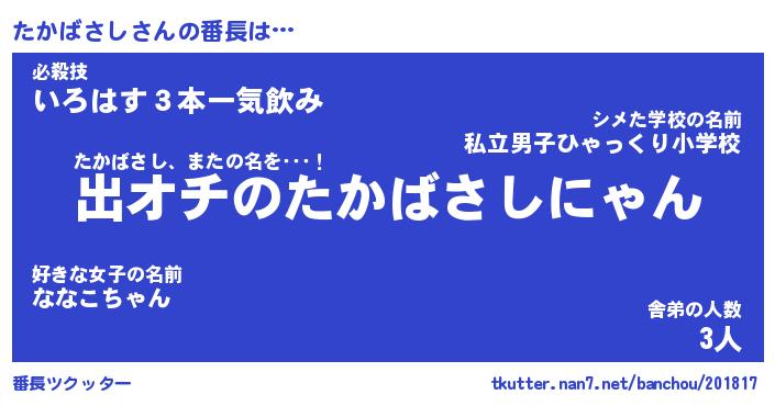 | ファンタジー風あだ名 | 『タカフェル』『エターナルタカバサシー』 |