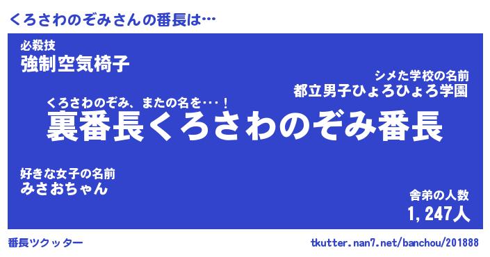 | 意味不明あだ名 | 『ペロリンくろさわのぞみ』 |