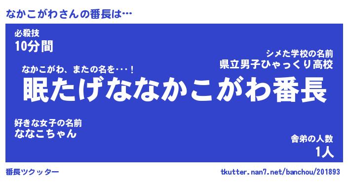| 男性向けラノベタイトル風あだ名 | 『ナカコガワアートオンライン』 |