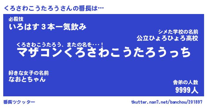 | 伝説のあだ名 | 『封印されしスナイパーくろさわこうたろう』 |