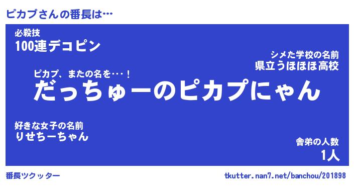 | 意味不明あだ名 | 『ペロリンピカプ』『ピカプフォーエバー』 |