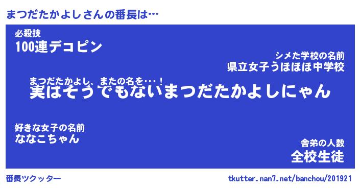 | ピコ太郎風あだ名 | 『マコ次郎』『ピマ次郎』『マツ六郎』 |