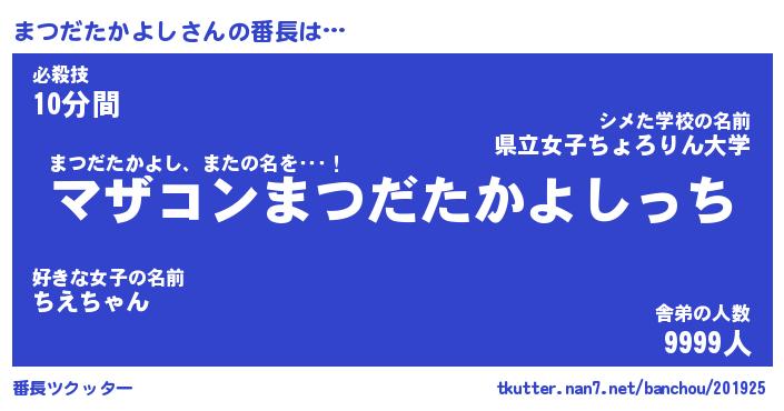 | ピコ太郎風あだ名 | 『マコ一郎』『ピマ一郎』『マツ八郎』 |