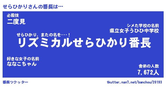 | 伝説のあだ名 | 『伝説のスナイパーせらひかり』 |