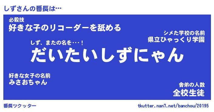 | ピコ太郎風あだ名 | 『シコ太郎』『ピシ史郎』『シズ太郎』 |