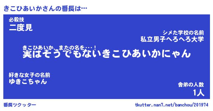| 肩書あだ名 | 『きこひあいか店長』『きこひあいか担任』 |