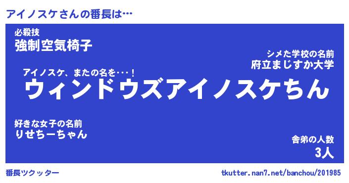 | ヒーロー風カッコイイあだ名 | 『スーパーアイノスケ』『銀牙騎士アイ』 |
