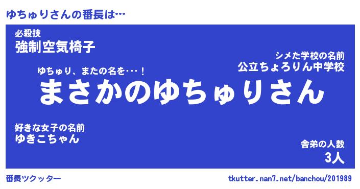 | 意味不明あだ名 | 『ペロリンゆちゅり』『永久保存ゆちゅり』 |