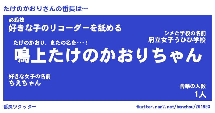 | ヒーロー風カッコイイあだ名 | 『スーパータケノカオリ』『黄金騎士タケ』 |