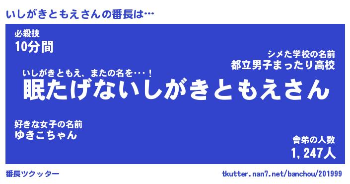 | ピコ太郎風あだ名 | 『イコ八郎』『ピイ一郎』『イシ史郎』 |
