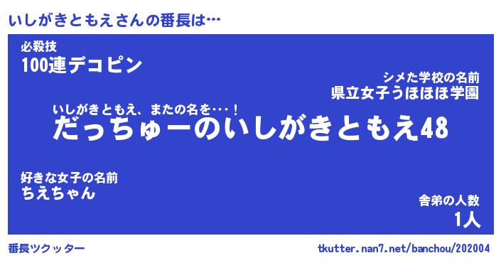 | ピコ太郎風あだ名 | 『イコ十郎』『ピイ太郎』『イシ十郎』 |
