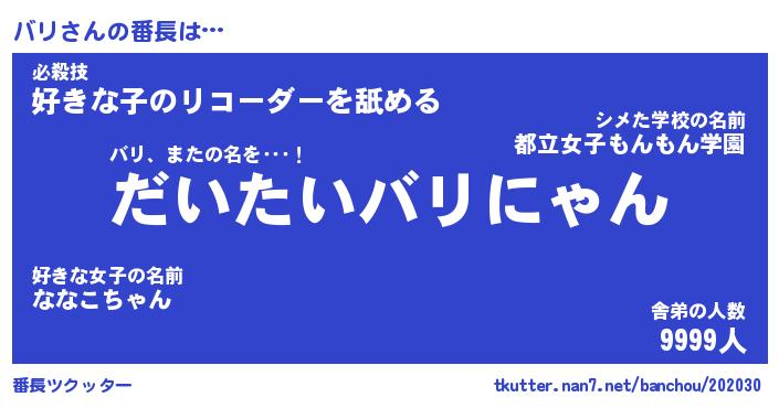 | ヒーロー風カッコイイあだ名 | 『スーパーバリ』『ウルトラバリマン』 |