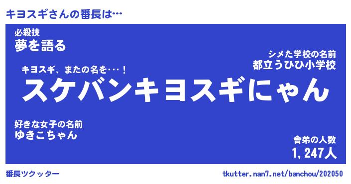 | 意味不明あだ名 | 『ペロリンキヨスギ』『永久保存キヨスギ』 |
