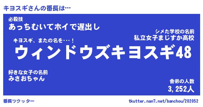 | 意味不明あだ名 | 『ペロリンキヨスギ』『永久保存キヨスギ』 |