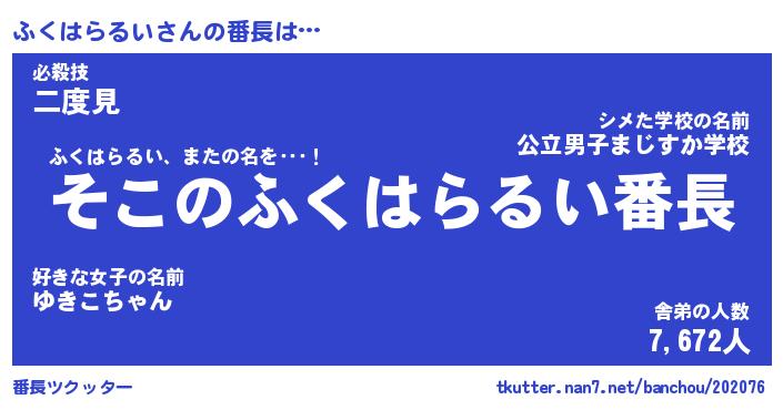 | ヒーロー風カッコイイあだ名 | 『スーパーフクハラルイ』『炎刃騎士フク』 |
