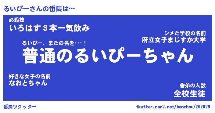 | 意味不明あだ名 | 『ペロリンるいぴー』『永久保存るいぴー』 |
