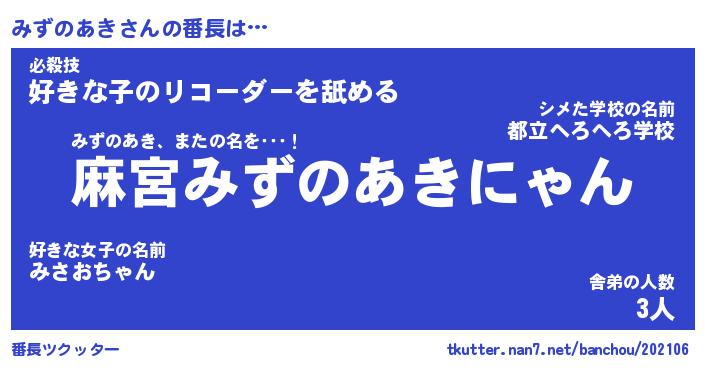 | ファンタジー風あだ名 | 『ミズフェル』『エターナルミズノアキー』 |