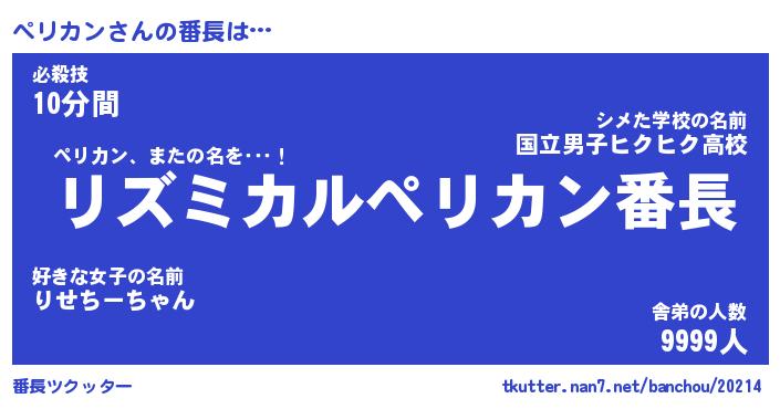 | ヒーロー風カッコイイあだ名 | 『スーパーペリカン』『暗黒騎士ペリ』 |