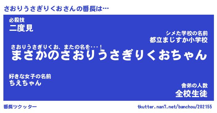 | 伝説のあだ名 | 『伝説の竜騎士さおりうさぎりくお』 |