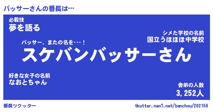 | 意味不明あだ名 | 『ペロリンバッサー』『永久保存バッサー』 |