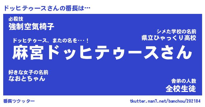 | ヘコむあだ名 | 『ドッもー』『牛乳』『ドッ太郎』 |