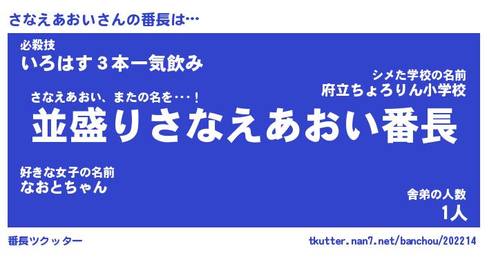 | 欧米人風あだ名 | 『マイケルさなえあおい』 |