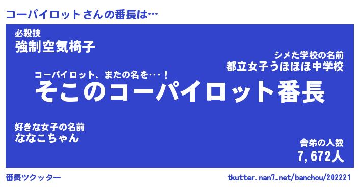 | 男性向けラノベタイトル風あだ名 | 『コーパイロットの憂鬱』 |