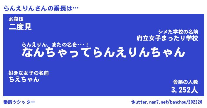 | 男性向けラノベタイトル風あだ名 | 『らんえりんの憂鬱』 |