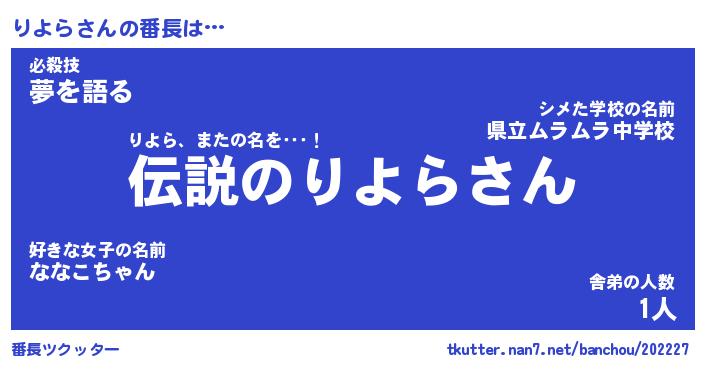 | 伝説のあだ名 | 『伝説の竜騎士りよら』 |