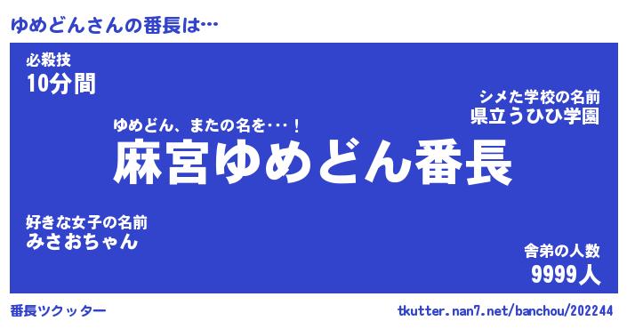 | ファンタジー風あだ名 | 『ユメフェル』『エターナルユメドンー』 |