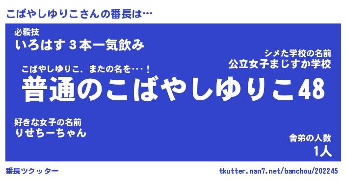 | 肩書あだ名 | 『こばやしゆりこ御曹司』 |