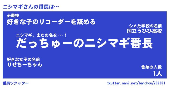 | ポケモン風あだ名 | 『ニシチュウ』『ニシマダネ』 |