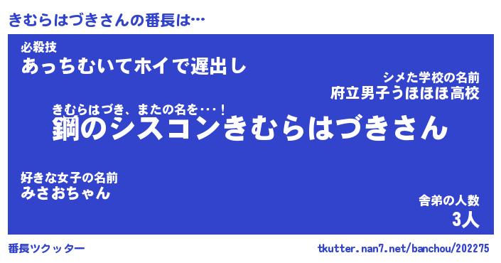 | ヒーロー風カッコイイあだ名 | 『スーパーキムラハヅキ』『銀牙騎士キム』 |
