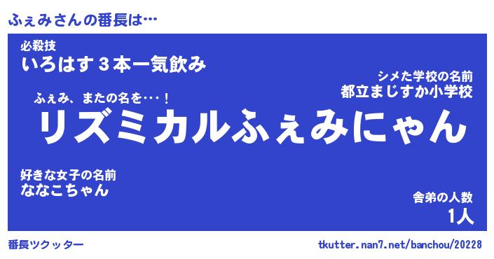 | ヘコむあだ名 | 『ふぇもー』『なまこ酢』『ふぇっ子』 |