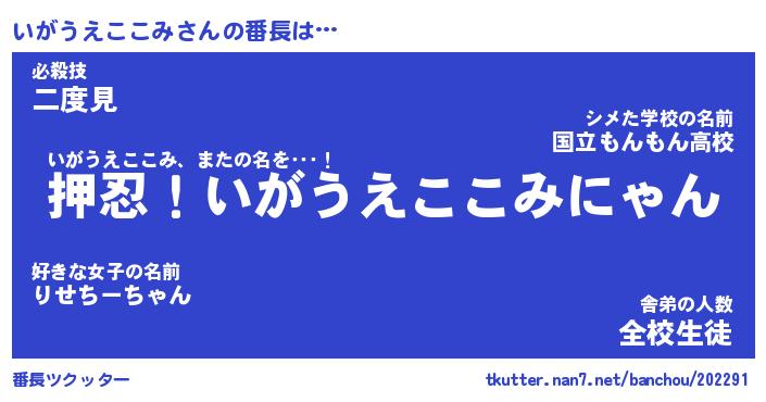 | 伝説のあだ名 | 『封印されしスナイパーいがうえここみ』 |