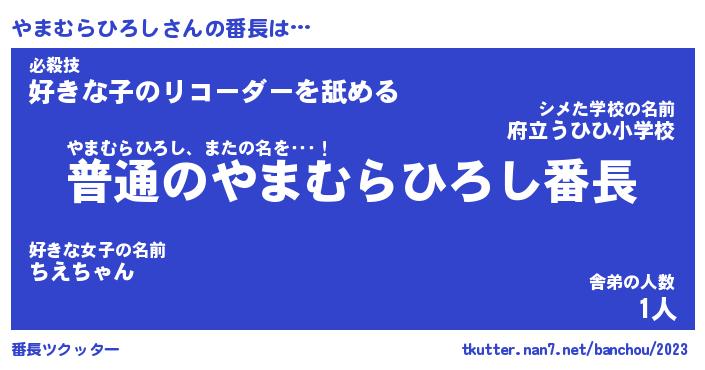 | 伝説のあだ名 | 『不死鳥の竜騎士やまむらひろし』 |