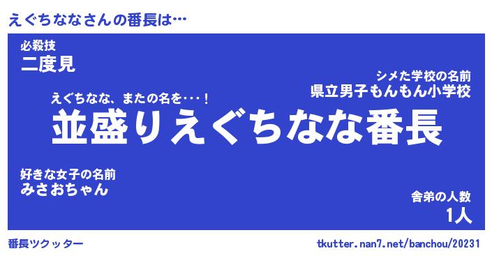 | 欧米人風あだ名 | 『マイケルえぐちなな』 |