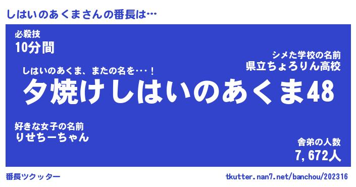 | ヒーロー風カッコイイあだ名 | 『スーパーシハイノアクマ』 |