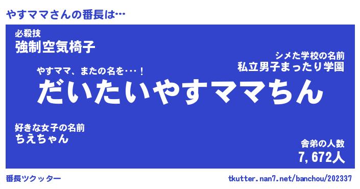 | 意味不明あだ名 | 『ペロリンやすママ』『永久保存やすママ』 |